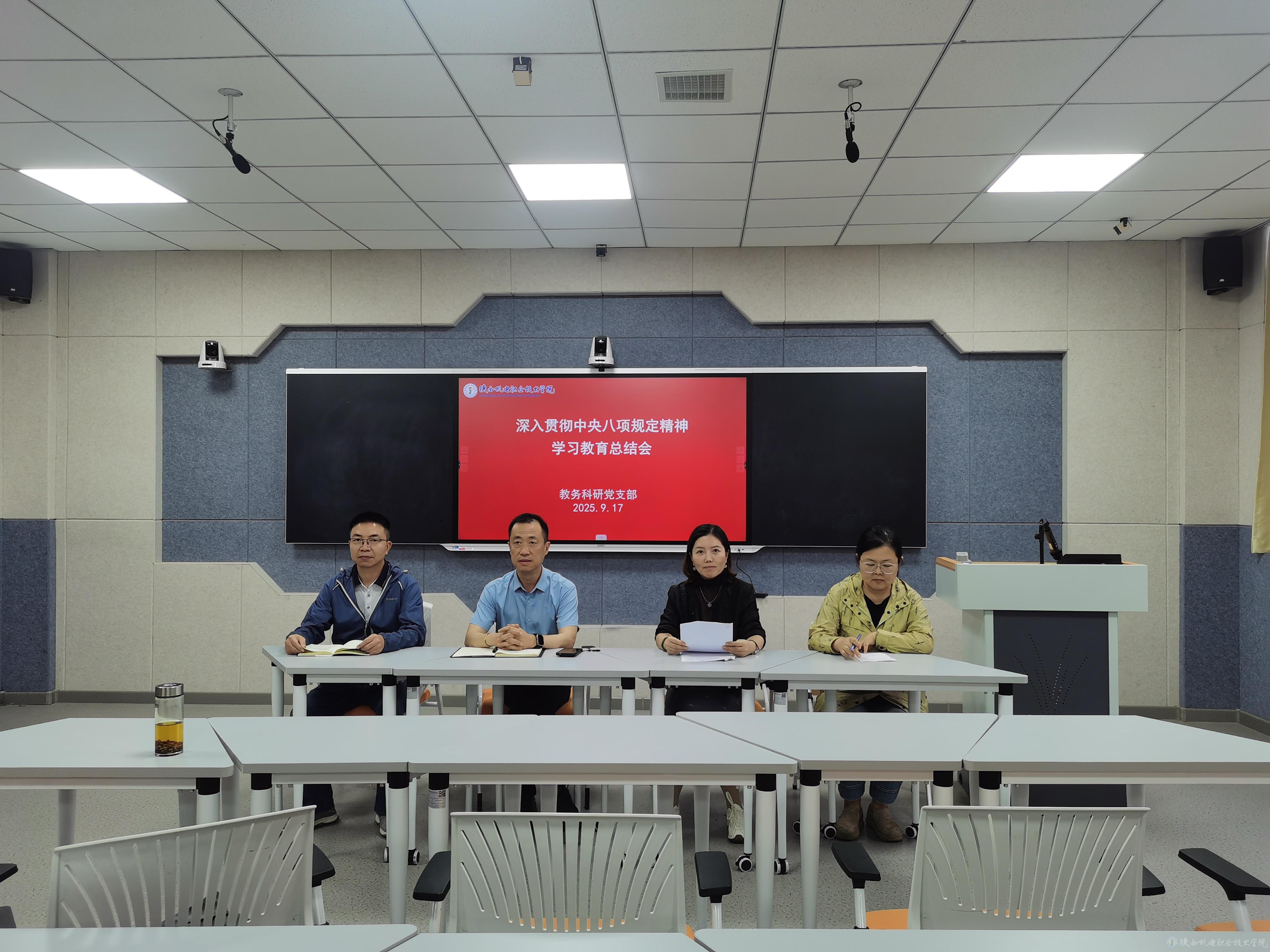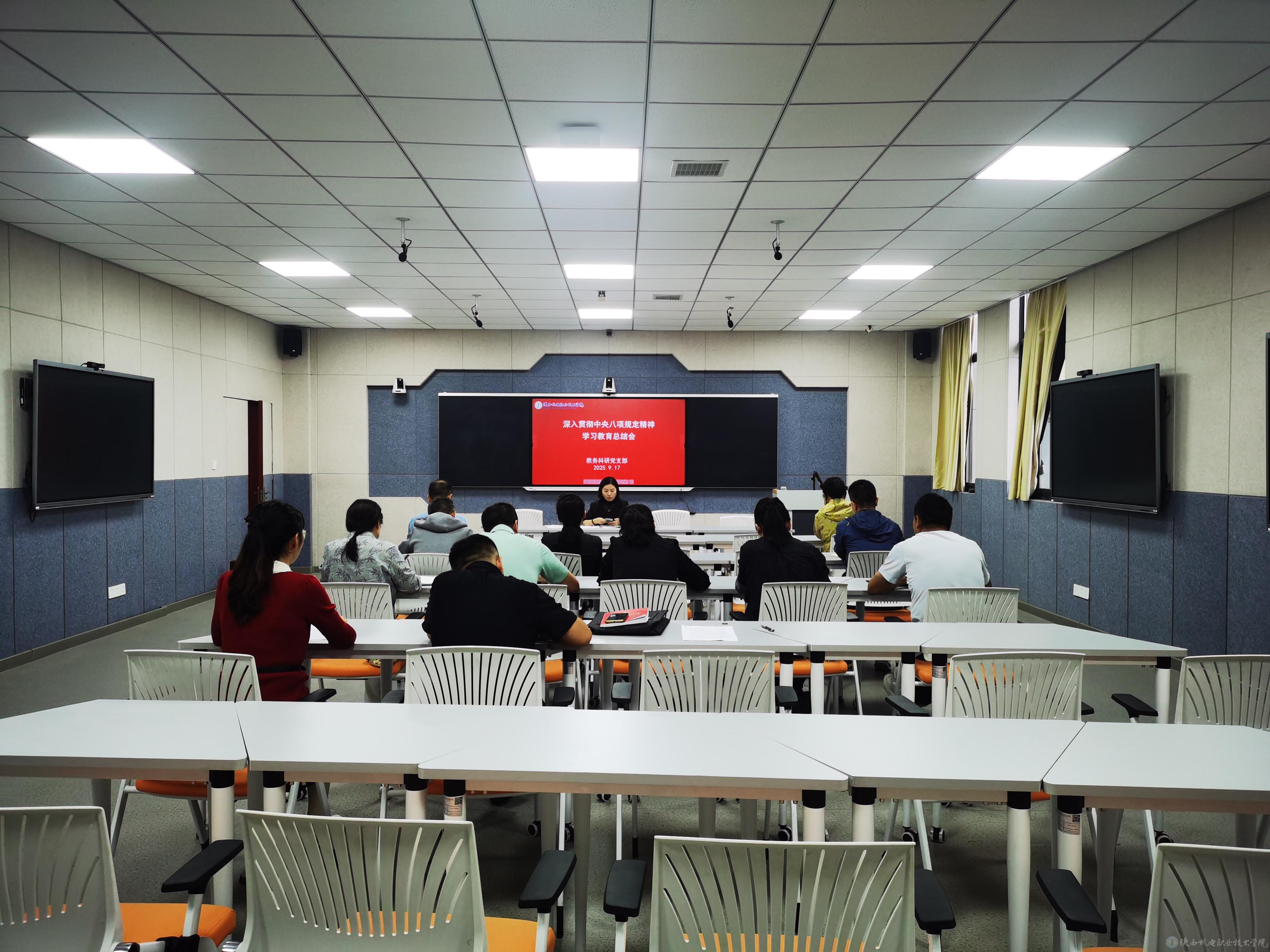为持续深化全面从严治党,巩固拓展主题教育成果,9月17日,教务科研党支部召开党员大会,以“深入贯彻中央八项规定精神学习教育总结会”为主题,通过“领学+研讨+视听+总结”四维模式,推动中央八项规定精神在教学科研一线落地生根。